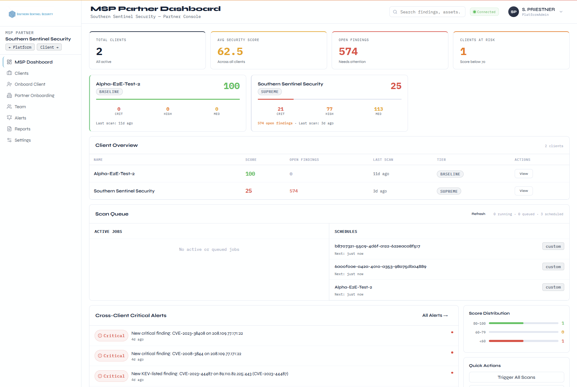 Scan results, compliance scores, and remediation tickets — all white-labeled under your brand.